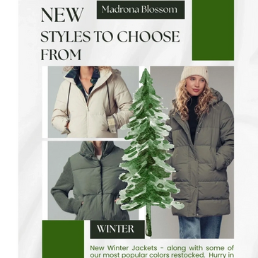 The perfect winter companion. Stay stylish with these winter jackets. Wonderful colors to choose from. Great selection. On Sale Now!!!